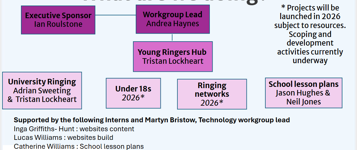 The following shows the projects that are included within the Young Ringers for Ringing 2030 workgroup portfolio: